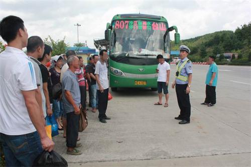 “中国抗日战争胜利暨反法西斯战争胜利70周年”小长假第二日,一辆超员过境大客车在途经粤桂省际卡口桂东收费站时被梧州交警高速一大队执勤民警逮个正着。