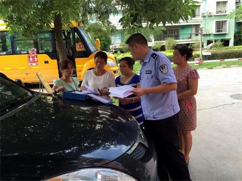 在行动中,民警严格检查了这几所幼儿园校车的管理制度和管理台账,仔细核对了校车驾驶人资质,对校车进行全面细致的安全检查。重点查看校车登记、运营手续是否齐全、校车机件是否符合安全条件、车辆投保情况等基本情况,认真检查了行车记录仪、车辆座位数和核载人数、校车外观标识、逃生锤、灭火器以及急救箱配备等情况。在检查结束后,民警对校园管理人员及校车驾驶员进行了交通安全法律法规教育签订了交通安全行驶承诺书,要求驾驶员务必时刻绷紧安全驾驶这根弦,严格遵守交通法律法规,让孩子们开心上学,平安回家。经过检查,民警发现今天检查的这几所幼儿园校车总体情况良好,日常管理较为规范,无违规运营现象。检查中,发现城市中心幼儿园有一辆校车存在逾期未年审的违法行为,对此民警给幼儿园管理者下发了《交通安全隐患整改通知书》,责令幼儿园管理者立即进行车辆年审,在未通过年审期间该校车不得上路行驶。