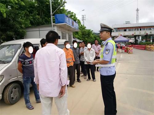 2015年9月8日,万秀交警大队民警在东出口卡点查处一辆面包车违规超员的交通违法行为。