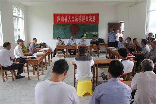 截至9月,蒙山县人民法院各民事审判业务庭致力于为乡镇、社区、村屯群众提供便利、优质、高效的法律服务,并积极开展法制宣传工作,让人民群众知法、守法、护法,共开展巡回开庭30余次,将近90%的巡回开庭案件都能以调解结案,实现了案结事了人和,法律效果与社会效果的和谐统一。