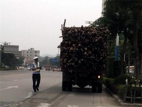 (长洲交警大队查获一辆超长运输木材车辆)
