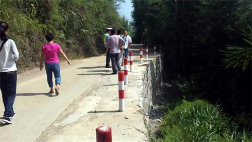 在排查中,检查组首先来到了蓬冲村,在村落周边发现很多的乡道都是依山而建,林木茂密,加之道路与周围有着巨大的高度落差,山高路陡弯道多,驾驶员容易视线不清,存在着很大的安全隐患,检查组立即进行查看登记,并将上报给长洲区政府。随后,在检查组继续深入旭村、龙江驿村等村落,在路途中还发现一些路段、路口、危险路段、事故多发点段设置的警示标志不足、标线不全等道路交通安全隐患问题,对此检查组分别一一作了排查造册登记,并将该汇总排查情况进行上报整治。