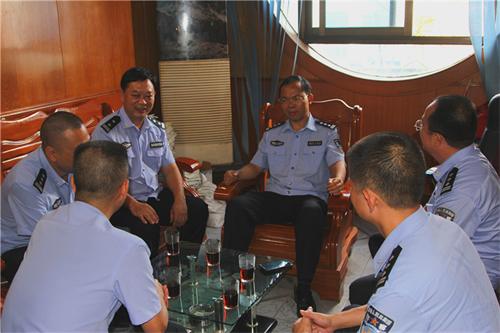 在法制宣传中队办公室,陆副处长听取了岑溪市公安局副政委、交管大队大队长近期各项工作的汇报后,对在“抗日战争胜利70周年”庆典及两会一节安保工作中带病坚守岗位、先进典型的民警覃勇伟同志进行亲切慰问,对覃勇伟同志工作上的责任意识、纪律意识,以自己的实际行动树立模范作用表示高度的赞赏及肯定,并嘱咐覃勇伟同志一定要注意保重身体,以充沛的精神状态投入到工作中去。