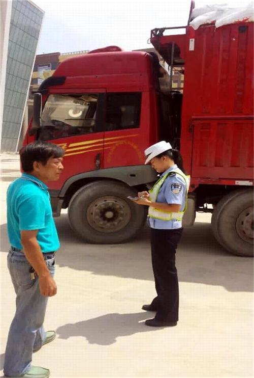 在16日的行动中,民警在舜帝大道查获一辆牌号为桂D08***的超载重型货车,车上满载袋装货物但驾驶员没有对货物进行遮盖运输,高耸的货物已经高过了车厢顶部,不少货物在车厢栏杆的空隙处和车厢尾部摇摇欲坠,让人看着胆战心惊。民警立即上前引导车辆靠边停放接受检查,面对民警的检查驾驶员显得有点局促不安,在民警的几次提醒下才慢慢拿出驾驶证、行驶证和相关运输证件。经民警了解,该车驾驶员是市内某塑料厂的员工,车上的货物是厂里急需的原材料,因为厂里着急要所以才铤而走险,超出核定重量运输货物。在了解情况后,民警对驾驶员进行了严厉的批评,再急需的原材料也不能用牺牲安全作为代价,重型货车超载行为是一种危险的驾驶行为,同时由于没有对车厢进行遮盖运输满载的货物还有从车厢掉落的可能,对后车的正常行驶造成安全隐患。随后,民警依法对驾驶员进行了行政处罚,并责令驾驶员叫来另外的车辆对货物进行卸货转运,在车辆未卸货转运前不能继续上路行驶。