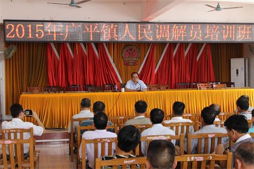 为了提高全镇人民调解员以及村委会干部调处化解矛盾纠纷的能力,龙圩区司法局在当地人民政府的协助下,召集广平镇20个村委会、1个社区的人民调解员和村委会、社区主任共70多人进行培训,大坡法庭负责人黄小戈应邀授课,通过发生在辖区内有代表性的几个生动案例,讲授《中华人民共和国妇女权益保障法》以及《中华人民共和国婚姻法》中妇女依法享有的特殊权益的法律规定。