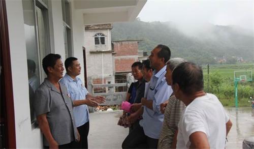 嘀、嘀、嘀……,雨中,山路崎岖且湿滑、雾气朦胧、法警冯安强开车慢行并不停地打着喇叭,经过将近一个小时的跋涉才抵达了当天巡回开庭的地点---朋汉村张家组。“下那么大雨,都涨水了,我还担心你们来不及了!”负责联系村民的张家组组长张信才见到法官按时到来有些诧异。“困难再大也要克服,要守时,讲诚信,务实事这是我们的工作准则。”庭长吕承汉连忙答道。8月初,接到该案后,庭长吕承汉便考虑到被告当事人来自朋汉村各个村民小组,人数较多且山路崎岖出行不便,经与原告协商后便决定到朋汉村张家组进行巡回开庭,为人民群众提供便利。“蒙山县人民法院黄村人民法庭现在开庭。”9月6日9时,雨中的山村里准时响起清脆的法槌声。