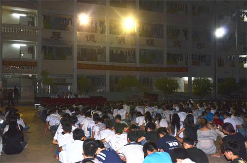 “关注青少年的成长,着力用法律知识为广大学生筑起安全保护墙。”这是苍梧法院工作的重要一部分。由于平日里办案任务繁重,为了避免耽误工作,而又能为职中的同学们送上法制关爱,苍梧法院刑事审判庭庭长兼职业中学法制副校长钟钊生特意选择了一个清朗的秋夜为同学们作“学习和生活中的安全防范措施”主题讲座。在职业中学的操场上,全体同学席地而坐,认真倾听着来自钟钊生庭长的讲课。