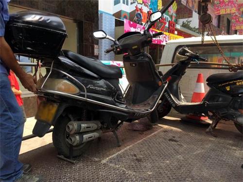 为了整治非法改装的燃油助力车,长洲交警大队深入辖区梅西商业广场和第二中学门口及周边道路开展大排查大整治行动,发现改装燃油助力车后通过照相固定证据同时联系拖车拖走进行下一步的统一处理。