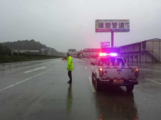 二、加强巡逻管控,及时处置险情。一方面,加强对重点路段、重点时段的巡逻管控工作,维护辖区高速道路交通秩序,把握住护网被破坏等重点部位,及时发现、纠正行人上路、违法停车等违法行为;另一方面,加大对易出现积水路段的巡查,督促经营部门对重要点段进行提示和整改,有效预防因强降雨造成影响安全通行的情况。