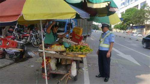 10月8日,龙圩区不少群众向市长信箱反映,在龙圩区花园路口处,“马路市场”再次回潮,一些摊贩利用非机动三轮车在斑马线上进行贩卖水果交易经营活动,严重妨碍了来往的车辆和行人,扰乱了正常的交通秩序,引起了交通乱象。大队城区民警接到市民报警后,迅速出警赶往现场进行管理和整治,抵达现场后,民警看到很多市民围着摊贩进行水果交易,严重阻碍了途经车辆通行。民警当即上前要求该流动摊贩停止在斑马线上占道经营的违法行为,责令该摊贩马上撤离现场,并要求其打扫干净斑马线上的杂物。随后,民警本着人性化管理的原则,采取了以教育为主的方式,认真指出其为贪图方便,在人流车流较多的三叉路口下进行买卖行为是违法的,强化其对自身行为的认识,并根据相关法律,对该摊贩进行处罚和教育,同时要求该摊贩写下保证书,保证其今后不再乱设摊点占道经营等违章行为。经过民警的处理,迅速消除交通安全隐患,还给了车辆和行人一个通畅的道路交通环境,民警认真负责的执法态度得到了市民的好评。