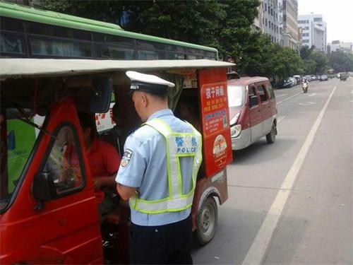 城区人多车多、路况复杂,加之公交车运行密度小、出租的士少,就“滋生”了三轮车的违法运营。众所周知三轮车安全系数低,载客上路不仅是对驾驶人本身还是对乘客都存在着严重的安全隐患,为此大队结合“重点交通违法行为”整治行动,采取突击整治、流动巡逻和定点查纠、强化辖区道路管控等方式,严查三轮车非法载客等违法行为,一经发现三轮车或驾驶人有非法载客等违法行为,坚决一律按上限从严处罚,并通过通俗易懂的宣传方式,督促广大三轮车驾驶人进一步提高安全意识,增强遵纪守法和文明驾驶的自觉性。针对一些经国家批准的正式厂家生产的三轮车,虽然有的办理了相关牌证手续,但从不参加一年一度的车辆年检;而一些非法改装、拼装的机动三轮车,则是什么手续也没有,随意加宽加长,安全性能极差。