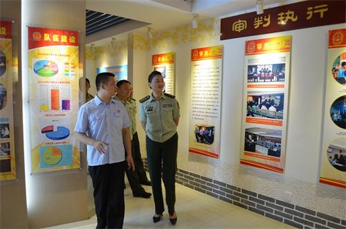 在解说员的带领下,25位官兵分别参观了龙圩法院的安检室、诉讼服务大厅、调解室、审判法庭、文化展览室等场所。通过实地参观、听取该院的专人讲解及与法官零距离的交流,官兵们对该院落实司法为民各项服务措施及立案和信访接待流程、审判委员会运作及推广网上办公网上办案的情况和成效、阳光司法及法院文化建设情况有了一定的了解。官兵们或忘情于龙圩法院便民利民的司法环境,或赞叹于审判法庭的威严肃穆,或沉醉于亲手敲响法槌的兴奋,或感触于高科技的三大司法公开平台,纷纷表示收获颇丰。