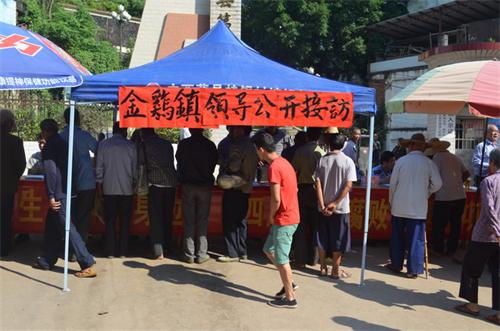 10月15日,金鸡法庭参加由金鸡镇党委、镇政府组织的在藤县四中门前进行的公开接访活动。
