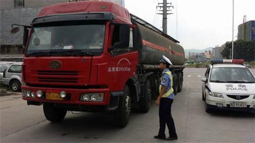 二、严惩危化品运输车辆交通违法行为,及时消除交通事故隐患。大队结合辖区危化品运输车辆运行路线分布特点,在国道207、321线龙圩路段设置临时执勤点,对过往危化品运输车辆进行严格检查,严惩危化品运输车辆交通违法行为。大队依托国道207线上城东五路设立的临时执勤岗,集中警力加大路面管控力度,依法查处危化品运输车辆超载、超速、无证运输、低速占道行驶、疲劳驾驶、违法停车、不按规定设置警示标志等交通违法行为。特别对悬挂警示标志的危险化学品运输车辆进行严格检查,重点检查车辆标志是否齐全、车身反光标识是否规范有效,有无押运人员、车辆年检合格证有效期、危化品公路运输通行证以及车辆行驶的时间、路线和速度等事项,对查处的危化品车辆交通违法行为,一律按照《道路交通安全法》及相关法律法规从严处罚,坚决做到违法行为不消除不放行。