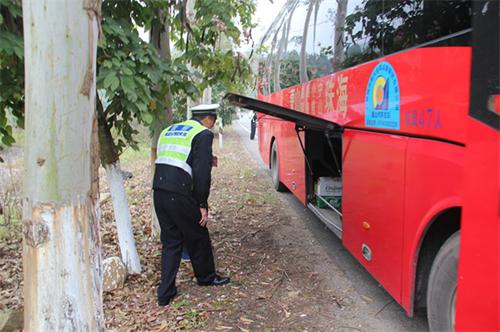 (认真检查经过的客运车辆)