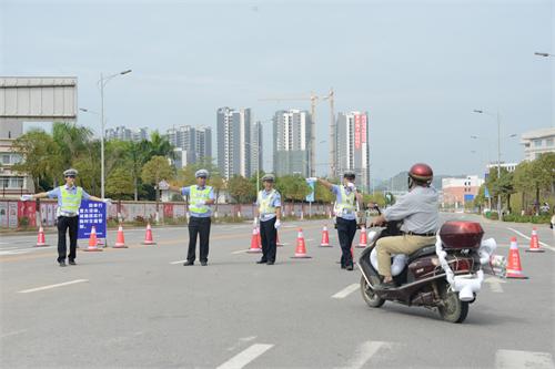 当天,我区和各地市领导、嘉宾,运动员、裁判、教练员参加开幕式,同时,我市各界嘉宾、群众前来观看开幕式。各方宾客在这一天齐聚我市,共同参加了这一体育盛世。梧州交警为不同类型的人员设计了5条往返路线以及2条应急处置通道。共划分了5个停车区,满足嘉宾车、公交车、通讯、电力应急保障车等不同类型车辆的停放需求。为了确保前来参加开幕式的不同人员以及车辆按照规划路线行驶,保障准确引导人员以及车辆集散,梧州交警提前进岗,规范着装,整齐排列,严阵以待,在岗执勤警员在岗持续在嘉宾往返线路的沿线坚守8小时。