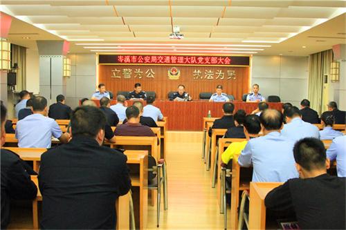 11月16日晚上,岑溪市公安局交通管理大队在三楼会议室召开党支部大会,对全体民警、协警党员进行思想教育整顿,并重温党章。