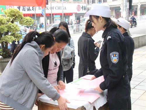 在中山小花圃设立了咨询点,万秀交警大队民警热情接待了前来咨询和签署倡议书的群众,并悉心接受了群众关于道路交通管理的一些意见和建议。另一方面,民警、少年警校学员、文明交通劝导员分散在4个路口一边向过往的行人分发宣传资料,一边向他们介绍资料的重点内容,尤其是常见的交通违法行为,并积极引导群众前往咨询点签署‘拒绝危险驾驶、文明安全出行’的倡议书,引导他们自觉遵守交通规则,抵制交通违法行为,做到文明、安全出行。