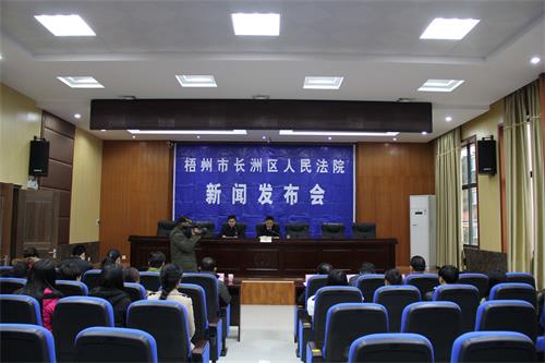 12月7日下午,梧州市长洲区人民法院召开主题为“发挥审判职能,落实司法为民”新闻发布会,向媒体发布该院完善司法便民利民举措,大力服务群众有关工作情况。梧州市委政法委、市中级法院、长洲区委政法委、金叶社区等代表以及自治区和梧州市各大媒体记者应邀参加发布会。