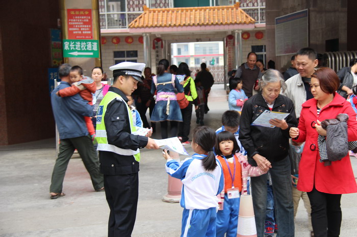二是上午11时30分学生放学期间,龙圩大队民警在交通流量较大、接送学生车辆较多的龙圩第一实验小学门前设立护学岗,手拉孩子过马路,护送学生安全回家,同时向广大师生宣传道路交通安全法律法规和交通安全常识,提高学生们的交通安全意识和安全防护技能。