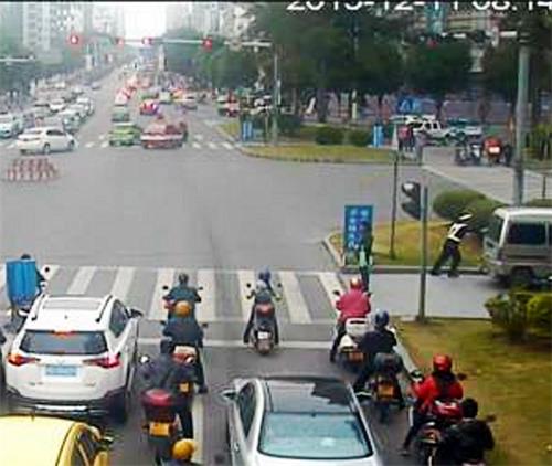12月11日早上8时左右,长洲交警大队秩序中队老交警邓国强师傅正在新兴三路市政府广场路口处指挥交通时,突然发现有一辆由东往西通行的面包车在行至旧梦之岛与苏宁电器对出机动车道时出现了故障,车辆停在了路中间动弹不得。由于正值上班高峰期,故障车辆停在路中间严重影响了其他车辆的正常行驶,导致该路段车辆通行不畅。