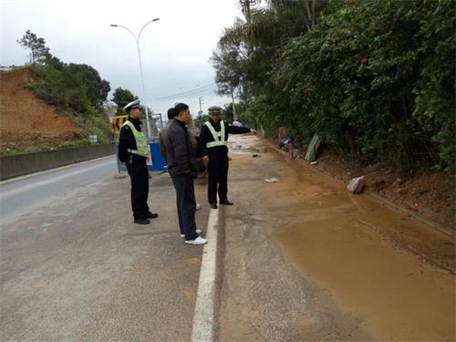 当天,民警与新梧公司工作人员,在国道321上进行逐段检查。民警详细记录了检查中发现的路面破损、积水以及淤泥等情况,同时,民警着重对滑坡路段、碎石滚落区域以及道路施工点等路段安全防护设施和警示、告知标志等情况进行了实地检查,并与随行的新梧公司工作人员就存在的安全隐患进行了详细记录,商量制定初步的应对措施,以便提交上级部门及所属公司进行备案及整治。此外,民警还细心发现悬挂在路灯上的广告宣传牌及道路两侧的树木遮档交通标志标牌等情况也是导致道路交通事故发生的潜在因素,尤其是在大风低温天气下,极易断裂、掉落而导致交通事故的发生。
