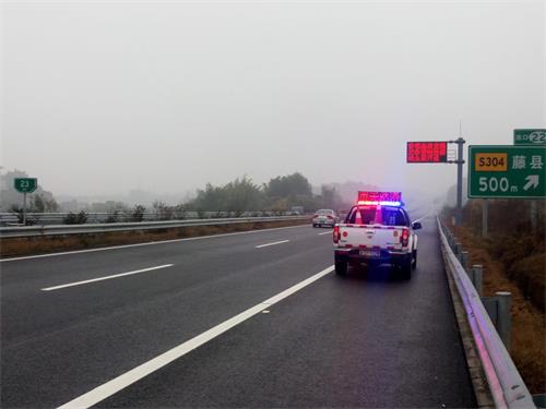 二是强化路面管控力度。大队以定点检查和流动巡逻相结合,通过警车警示压低车速、LED屏安全提醒等方式,要求过往车辆注意雾埋天气,小心慢行,遵章守法。同时安排警力在藤县收费站设置执勤点,重点查处超员、超载、超速、疲劳驾驶等交通违法行为,保障道路交通安全、有序、畅通。