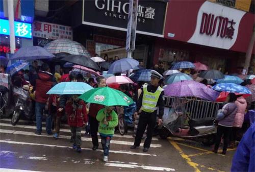 (雨中执勤)