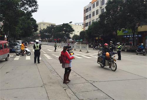 (龙圩交警大队积极开展“文明出行 礼让斑马线”交通劝导活动)