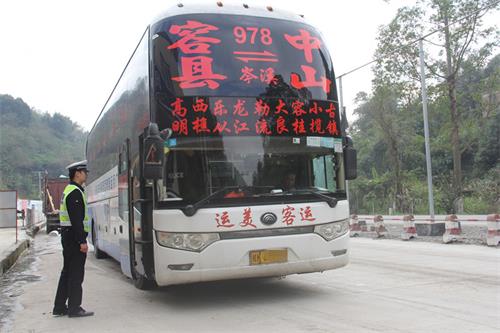 元旦小长假群众出行较为集中,农村集市、民俗活动增多,国道324线筋竹黄陵村路段是广西“东大门”,途经村镇、集市,承担着较大的交通流量,也存有一定的安全隐患。元旦期间,交警部门抽调警力恢复筋竹黄陵检查站功能,在设卡点来车方向150米以外设置警告标志,引导途径车辆在待检区进行安全检查,重点查处无证驾驶,客车、货车、危化品运输车等车辆超员、超速、不按道行驶、酒后驾驶、超载、不系安全带、疲劳驾驶等违法驾驶行为。