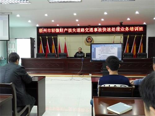 为了提高全体民警和协警的事故快速处理业务技能,1月7日,梧州市公安局和梧州保险行业协会联合举办的梧州市轻微财产损失道路交通事故快速处理业务培训班在市公安局交警支队六楼会议室顺利开班。长洲交警大队全体民警和协警参加了本次培训班。