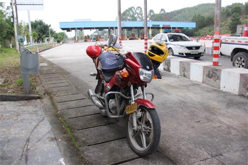 一名返乡男子骑着一辆二轮摩托车在经过省标卡口桂东收费站时,被执勤高速民警逮个正着。