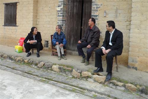 法官们向村干了解刘大爷近况