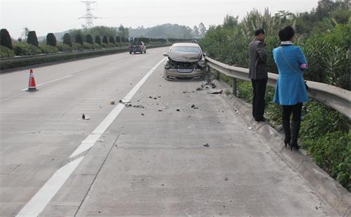 1月9日上午10时,来自梧州的市民赖先生驾驶一辆小车在G80广昆高速行驶时,当车辆行驶到198KM时(梧州往广州方向)由于后方车辆超车,加之赖先生首次上高速缺乏经验,操作不作,撞上路边防护栏,导致小车车头严重变形,幸好的是人员没有大碍。