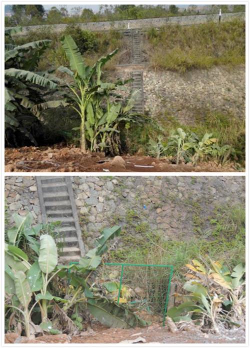 上图为被毁坏的护栏,下图为修复后的护栏