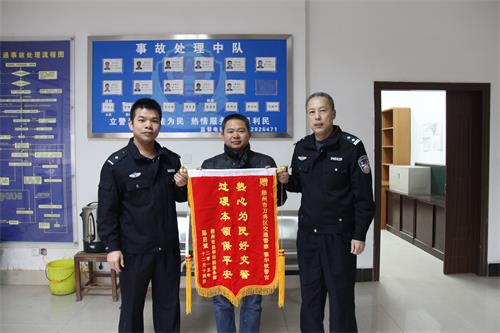 1月15日,一起交通肇事逃逸案的伤者家属来到万秀交警大队事故处理中队,将一面“热心为民好交警,过硬本领保平安”的鲜红锦旗送到事故处理中队中队长手中,感谢民警黎警官为破获该起交通肇事逃逸案所付出的辛劳。