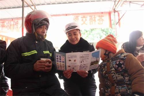 9点多,春运服务站迎来了第一批返乡务工人员,几名党员义工人员赶忙迎上前去,首先安排他们停放好车辆,引导他们到休息棚里休息取暖,递上热腾腾的姜糖水和方便面,一边和他们聊起家常,问寒问暖,并帮农民工接通家人的电话报平安,一边向他们发放由苍梧县交警大队自编自印的交通安全宣传小册子,在宣传展板前,交警大队的民警向农民工讲解交通安全常识,叮嘱他们一定要遵守交通法规,注意安全。在摩托车停放处,几个青年志愿者为务工人员检查车辆、提供免费维修服务,医务人员向农民工咨询身体健康情况,临走前义工人员还向农民工送上了购物袋、水杯、八宝粥等物品。