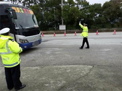 示意客车靠边接受检查
