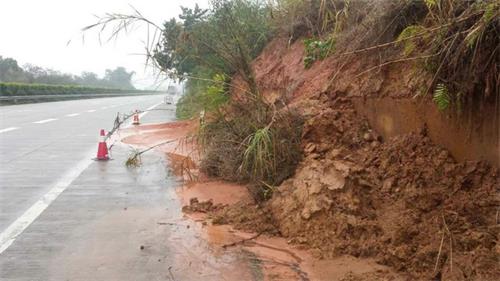 期间,大队执勤民勤按照要求,在辖区高速公路路段进行全面巡逻排查,当巡逻至岑罗高速岑溪往罗定方向5KM处,发现路边山体由于雨水冲刷作用,土质松软出现滑坡现象,部分黄泥已堆积到高速公路应急车道,给道路交通带来了严重的隐患。见此情景,民警快速反应,在滑坡路段摆放反光锥筒警示,预防发生交通事故,并针对此隐患制作整改报告,联系相关管理部门尽快对现场进行清理,消除安全隐患,恢复良好的路面状况,以免受连续阴雨天气影响造成更大的滑坡现象,影响交通。