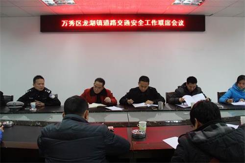 会上,龙湖镇政府主要负责人总结上年镇联席会议工作情况,分析全镇交通安全形势,对下一步的工作进行了动员和部署。随后,大队民警通报了龙湖镇道路交通事故情况,深刻分析了辖区道路安全形势,就春运交通管理工作提出了要求:一是全力排查道路交通安全隐患,将隐患点段向上级汇报,积极进行整改;二是全力开展农村地区交通违法整治,降低农村事故发生率,完善相关的安全制度;三是充分利用“两站两员”机制,积极协助交警部门积极做好农村摩托车、农村面包车的整治工作;四是利用农民赶圩、民俗活动等时间节点,开展农村地区交通安全宣传教育工作,提升农民的文明交通素质和安全意识;五是大队与镇各职能部门加强沟通,确保春运交通安全工作顺利开展。