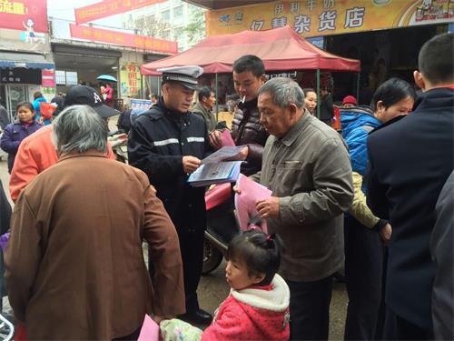 与此同时,民警带领农村交通安全宣传劝导员,以切实提高农民群众的交通安全法意识和依法交通的自觉性,自觉抵制、杜绝各类道路交通违法行为为目的,对过往摩托车、农用车、低速货车、面包车等重点车辆、重点驾驶人开展交通安全检查劝导工作,劝导主要教育过往司机和群众不要非法搭客和不要乘坐非法改装的面包车、农用车、载货车辆,坚决抵制违法行为。向农民群众派发《刑法修正案(九)解读》、《重拳整治摩托车、燃油助力车严重交通违法行为》等宣传单,告诫群众在春运、春节期间切勿搭乘“黑车”、“黑摩的”等违法上路载客车辆,确保出行平安。