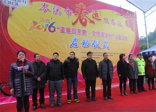 在启动仪式上,岑溪市的春运服务爱心企业代表、志愿者代表首先作了发言,对切实做好2016年度春运服务工作作出了表态和承诺。