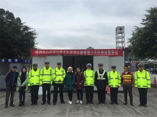 2月2日下午,梧州电台记者一行五人来到辖区岑溪东春运服务站采访春运期间交通安全保畅工作。