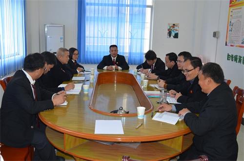在大坡法庭,院领导与干警围成一圈,就法庭今年的工作思路和计划开怀畅谈。