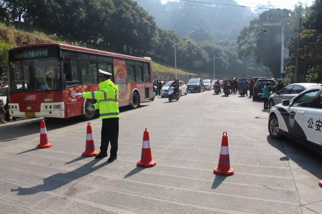 春节前夕,大队就专门召开春节期间的工作部署会,针对春节期间辖区交通流量大的特点,采取弹性工作制,根据辖区路面实际情况,大队打破常规,因地制宜调整勤务布局和警力配置,合理设置岗勤时段和巡逻线路。农历年初一,副支队长李国民领带大队,深入到一线路面,靠前指挥,民警、协警根据大队的工作部署,全警上路,强化市区中山路、西江路、新兴路、西堤路、文澜路、大学路等主干道管控,并加大了对旺城广场、太阳广场、国泰广场、白云山风景区的定点和巡逻,依托建行岗、新兴岗、中山岗、渡口岗重要部位增加固定岗位和巡逻警力。同时,大队强化指挥疏导,对重点时段进行定点疏导,最大限度的提高道路通行能力。