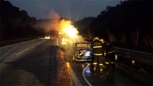 2016年2月17日凌晨5时35分许,梧州市交警支队高速公路管理三大队接报称,在S50线岑罗高速公路往罗定方向32公里处,一辆小汽车发生自燃。接到报警后,高速公路管理三大队的值班民警火速出警,赶往事发点,全力保障人民群众的生命和财产安全。