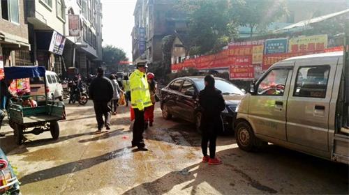 2月8日,正是传统节日大年初一,不少乡镇居民前往倒水镇县城游玩购物,在倒水镇中心街的年货市场上的人特别多,中午11时左右,在年货市场某路口,一辆小轿车和一辆小货车都准备通过该路口,由于两辆车的驾驶员都各不相让,导致车辆无法顺利通过路口。在接到群众致电后,长洲交警大队倒水中队民警郭金润立即带领协警赶到现场对交通进行指挥疏导。郭金润中队长一边安排协警对路口周边的机动车和行人进行疏导,一边对双方驾驶员进行劝导。经过郭金润中队长10多分钟的劝导教育,两位驾驶员终于认识到了自己的“斗气”行为给交通带来的不良影响,并在民警的指挥下及时将车辆驶离路口,恢复了该段道路的交通秩序。