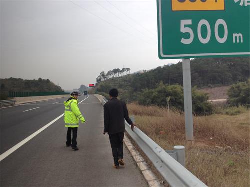 民警迅速出警,大概在距离塘步收费站出口不远处发现该男子。