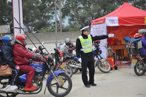 苍梧县交警副大队长梁禄告诉记者,摩托车长途驾驶安全是最重要的,该大队在国道207线旺甫镇辖区设立春运服务站外,将警力部署到通向偏远的岭脚、狮寨、京南等偏远乡镇、村屯的道路上,将春运服务延伸至铁骑返村屯沿线,有效确保爱心服务不掉队,护航好返城铁骑安全启程的“第一公里”。该大队在偏远乡镇、村屯的部分路况复杂地段设置了8条“爱心通道”,安装了30多块“路况交通复杂,请减速慢行”、“前方1公里临时爱心服务点”、“路滑,请保持1.5米安全距离”、“前方为事故多发路段,请减速慢行”等各类安全提示牌。此外,在路况复杂的急弯和交叉路口,交警部门还新设立的道路隔护栏、减速带。