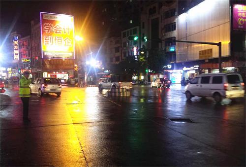 元宵节当晚,龙圩辖区气温偏低,下起了小雨。为确保下雨天辖区道路安全畅通,大队首先是启动了恶劣天气应急预案,要求全警出动,提前到达执勤岗点,最大限度的把警力投入到路面一线,进一步加强对城区龙城路、广信路、政贤路等主要路段、路口的警力部署,及时指挥疏导车辆规范通行和引导车辆按照正确路线安全行驶。其次是强化了道路管控,大队派出警力加大对辖区国道207线。国道321线、城东五路苍海湖公园路口等的巡逻力度和密度,在积水较多的路段,利用警车的LED荧屏提示雨天路滑,请减速慢行。再次是做好自我安全防护,大队要求民警对自身的个人执勤装备,车辆警灯、警闪肩灯、对讲机、警务通等进行检查,提醒民警在一线路面执勤疏导中,着穿反光背心,注意加强自我安全防范。最后是加强安全提示,在主要路口、路段放置反光锥筒、温馨提示牌等形式,提醒过往车辆注意行车安全,谨慎驾驶,保持安全的车距等等,并利用“双微”平台及时发布辖区的路况信息提示,为群众欢度元宵节打造一个安全、畅通的交通环境。